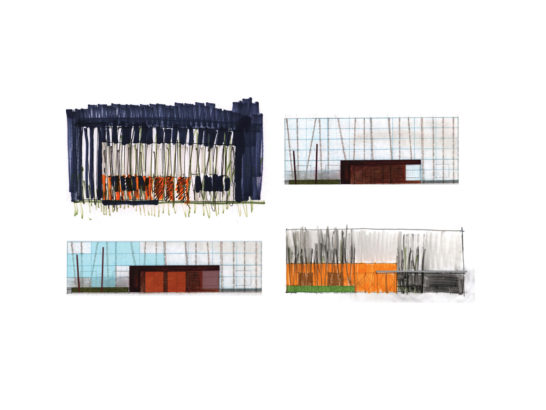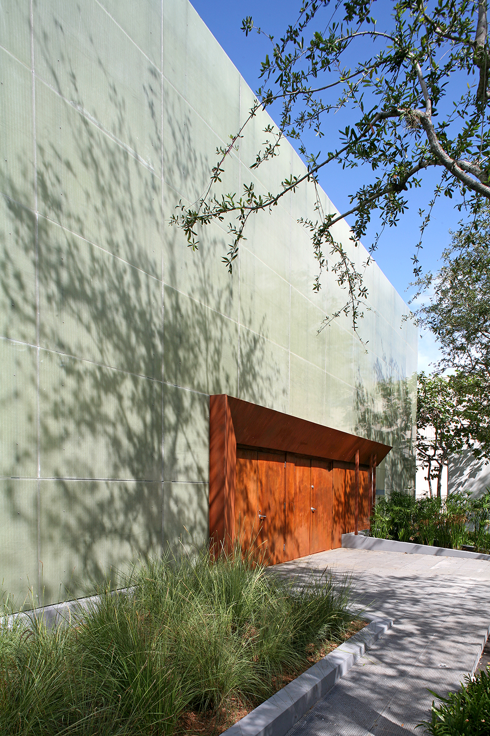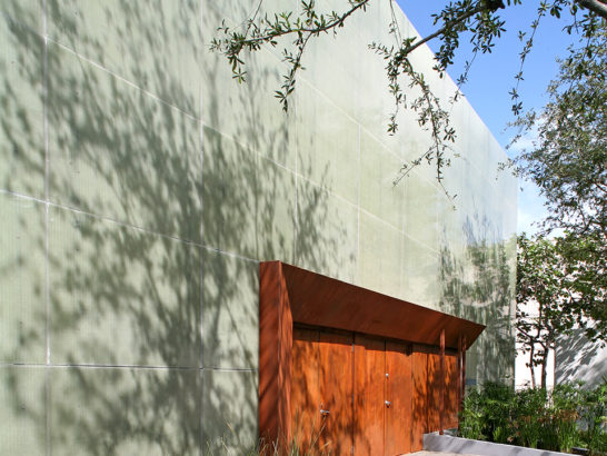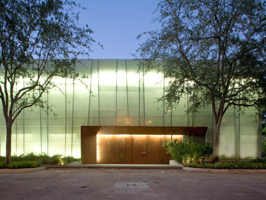 On a quiet street on the northern edge of downtown Fort Lauderdale, GLAVOVIC STUDIO created a resonating presence for a new paradigm: Girls’ Club, an artist studio, collection, gallery, foundation and quasi-public space. Francie Bishop Good, a well-known artist and collector of women’s art, and David Horvitz, her husband, started Girls’ Club to provide a nurturing space for women in art. GLAVOVIC STUDIO radically modified an existing two-story masonry building from 1984, adding a reconfigured façade layered with light, landscape, and materials from local craft-making techniques and industrial references, announcing the mission of the Girls’ Club. The façade is clad in resin panels, layered on adjusted steel framing that creates the illusion of a vertical landscape directly over the existing windows and wall. A thin veil of light creates the illusion of skin and stone. This concept of layering continues inside through the steel entrance; it unifies the artist and exhibition space. Materials, light, and color are explored providing an ideal environment for art and artists to exchange and the public purpose to unfold. A series of pivot walls are inserted to reconfigure the space as needed. Florida’s light is modified both vertically, horizontally, and through deep penetrations into the service spaces. A mezzanine is introduced to create an intimate space for an artist in residence, with a change in scale and point of view. This project explores issues of existing, adaptive use, public and private, the feminine and the domestic through color, layering of materials, point of view, intimacy, and adjustment. The projection of the image in relation to City Hall and the value ascribed to art are not incidental. Exterior landscape concepts merge in towards the building to integrate into the surfaces with indigenous species while natural light and layers play on the surfaces. Photography by Robin Hill and Paul Clemence.