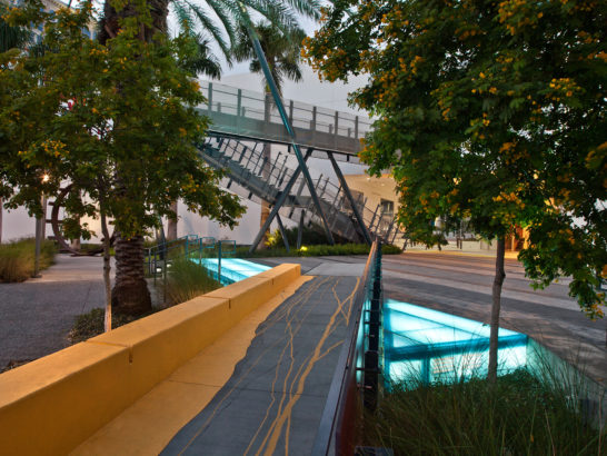 GLAVOVIC STUDIO worked closely with the NSU Art Museum Fort Lauderdale over seven years to upgrade and reorient the museum. The range of projects included modifying the lobby, adding a café, renovating the museum bathrooms, reenvisioning the entrance, adding a monumental stair, and an art commission, Threshold.