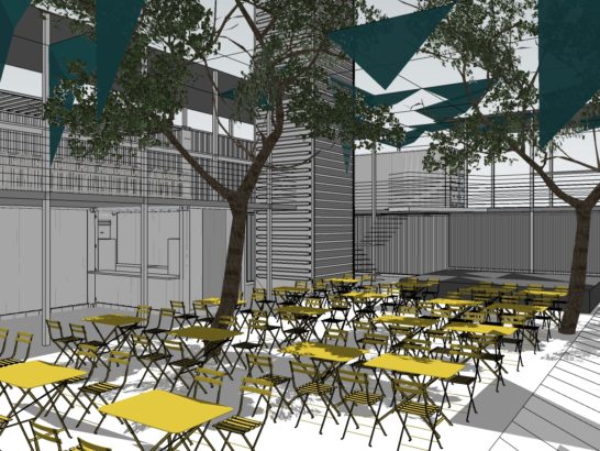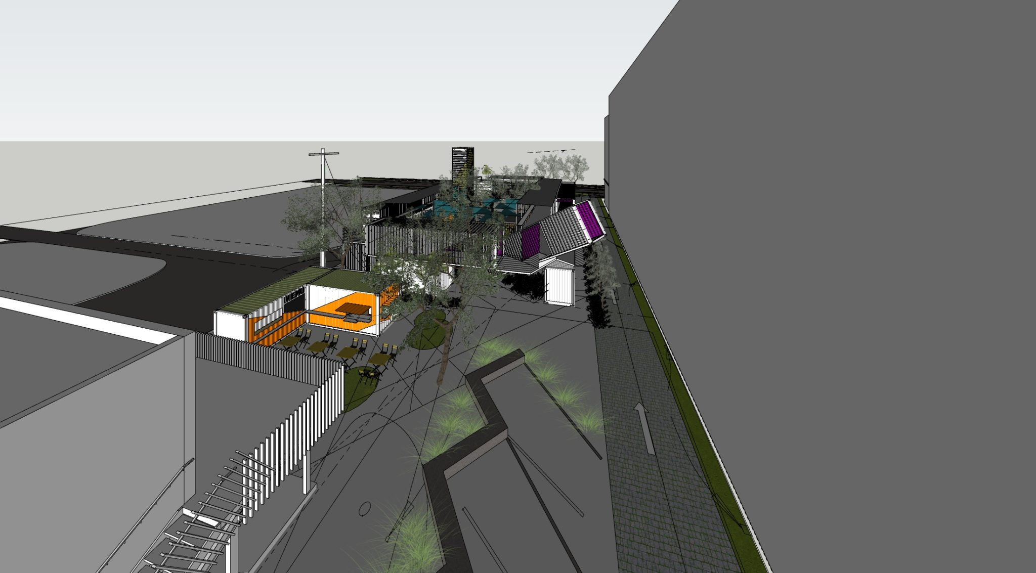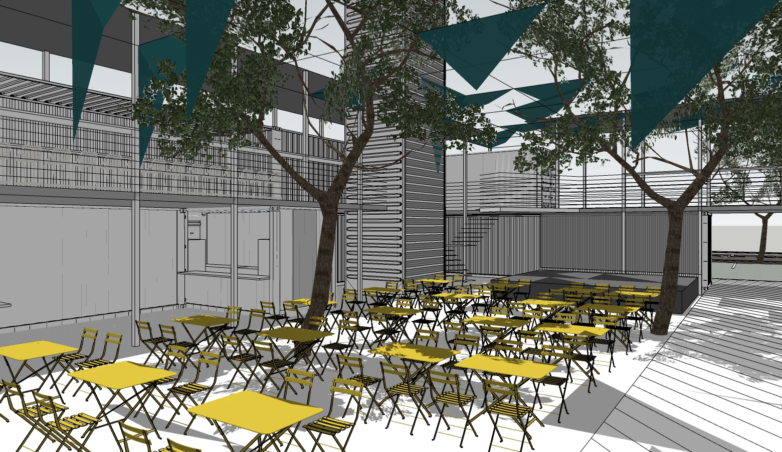 Over the years, AQUI and the GLAVOVIC STUDIO design team have traveled across the world, visiting shipping container complexes. These visits have inspired and influenced the approach and concept behind THE BACKYARD. For instance, the remarkable Boxpark in London, UK, exemplifies this design thinking as a veritable solution where shipping containers provide multi-uses— the ground-floor has retail spaces and the second-level has venues for people to enjoy food, drink and entertainment. The Napa Yard — Oxbow Gardens in Napa, California, has converted shipping containers for the gardens distillery and eateries.