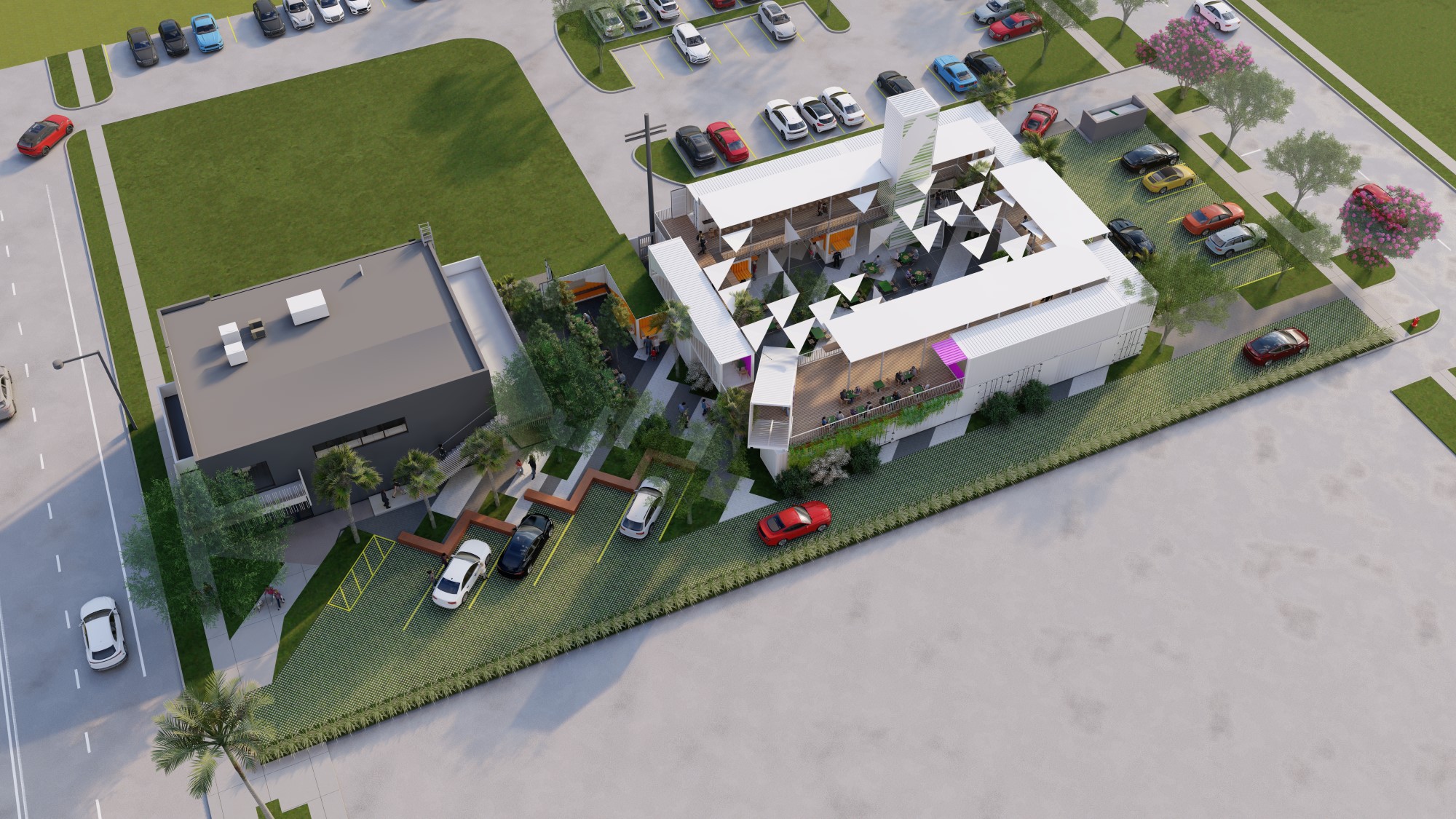 In recent years, South Florida’s arts and entertainment scene has embraced the shipping container aesthetic and this project is intended to be a noteworthy addition to Flagler Village. The South Florida experience will be punctuated with green space filled with native plants in the semi-enclosed, shaded landscaped courtyard to the east of the project’s site.